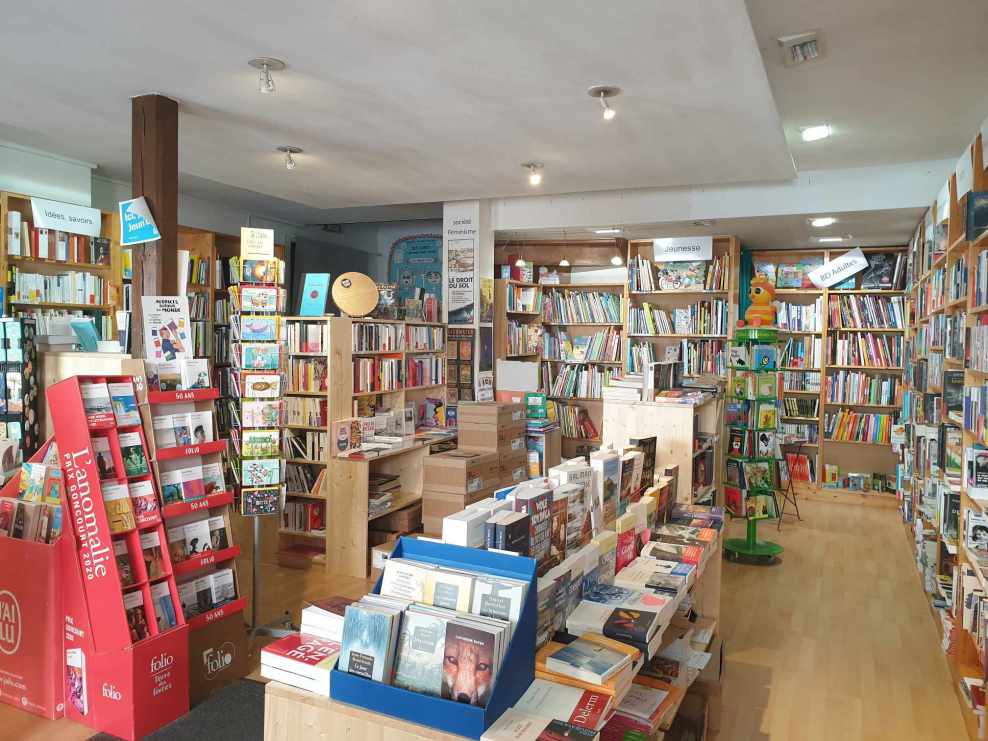 Ses larges vitrines permettent la présentation d'une grande variété d'ouvrage, et son emplacement est idéal pour les animations en extérieur à l'arrivée des beaux jours. Avec son espace littérature, documentaires et nouveautés, la librairie vous propose de nombreux choix de lecture ; son coin B.D. et jeunesse peut se transformer en espace de contes pour les enfants à l'occasion !